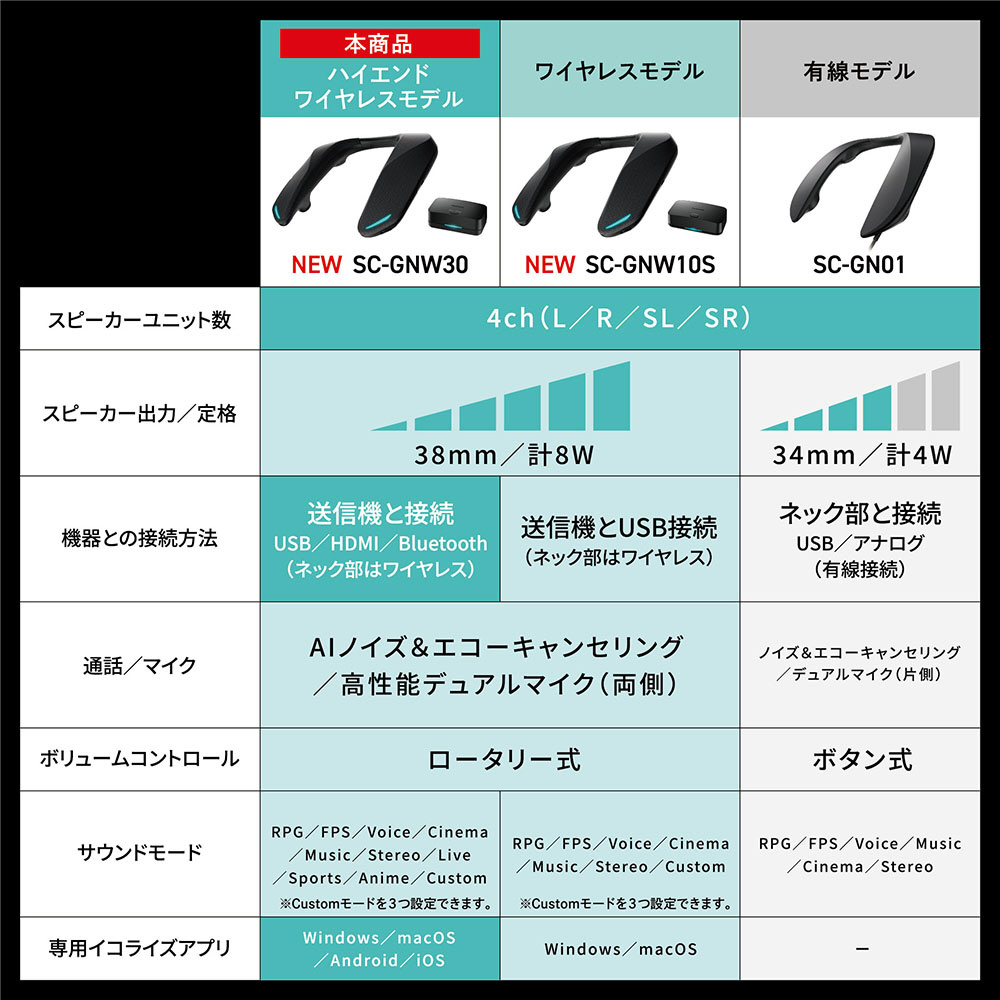 ゲーミングネックスピーカー HDMI対応(Android/iOS/Mac/Windows11対応) ブラック SC-GNW30 [ワイヤレス(Bluetooth+USB) /両耳 /ネックバンドタイプ]