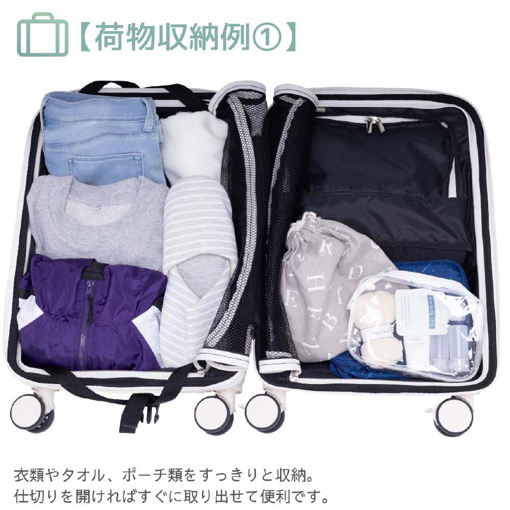 スーツケースを寝かせずに開けられるトップオープン構造。ノートPCや折りたたみ傘、ガイドブックなどをスマートに収納できます。トップからメイン収納へのアクセスも可能。