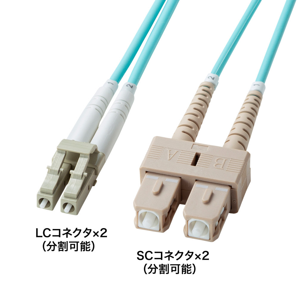 補強メガネ型光ファイバケーブル(マルチOM3、LC×2-SC×2、10m) HKB-HOM3LCSC-10