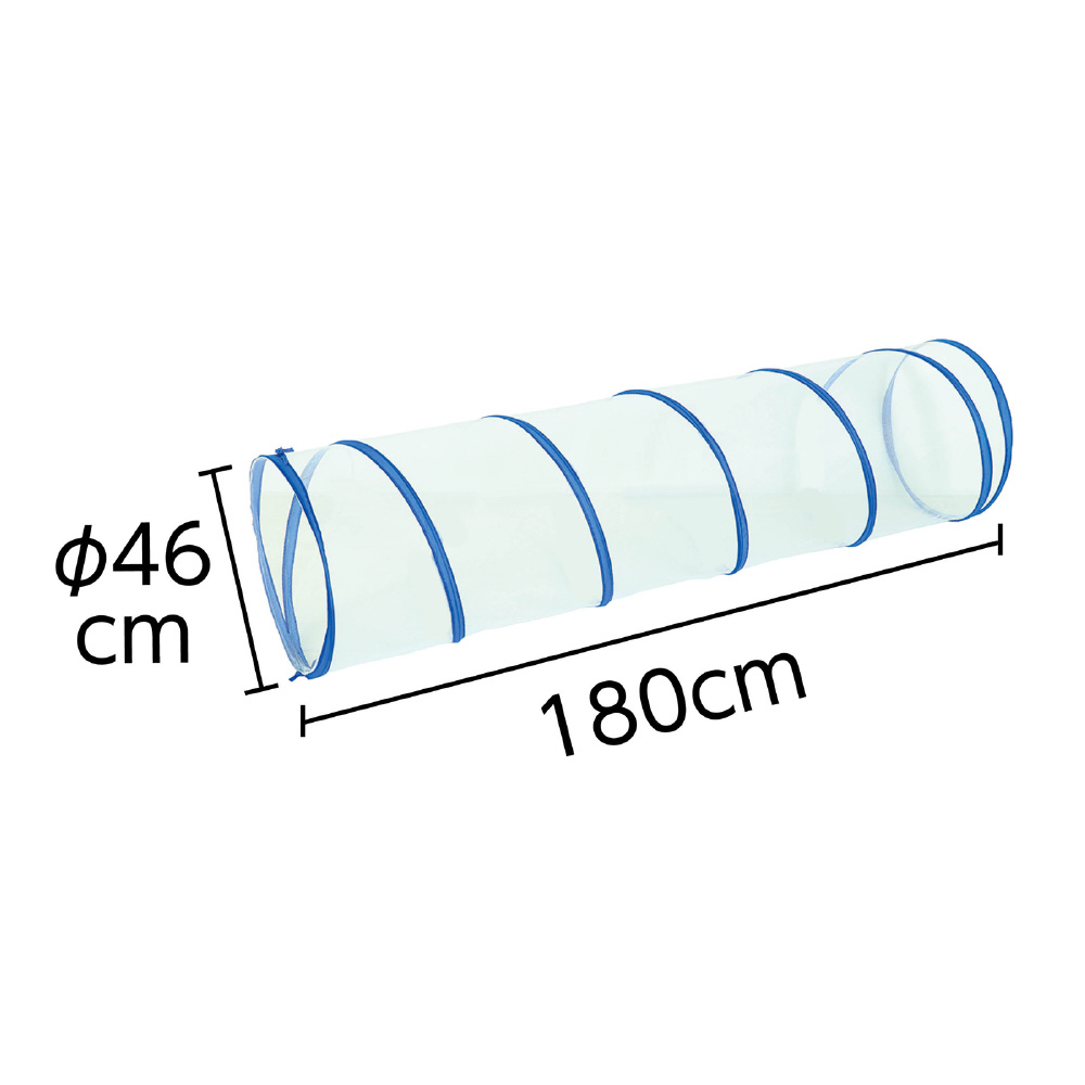 メッシュタイプのプレイトンネルです。オールメッシュで外から中の様子が見えるので、安心です。競技にも使用できます。折りたたんで収納できるバッグ付き!