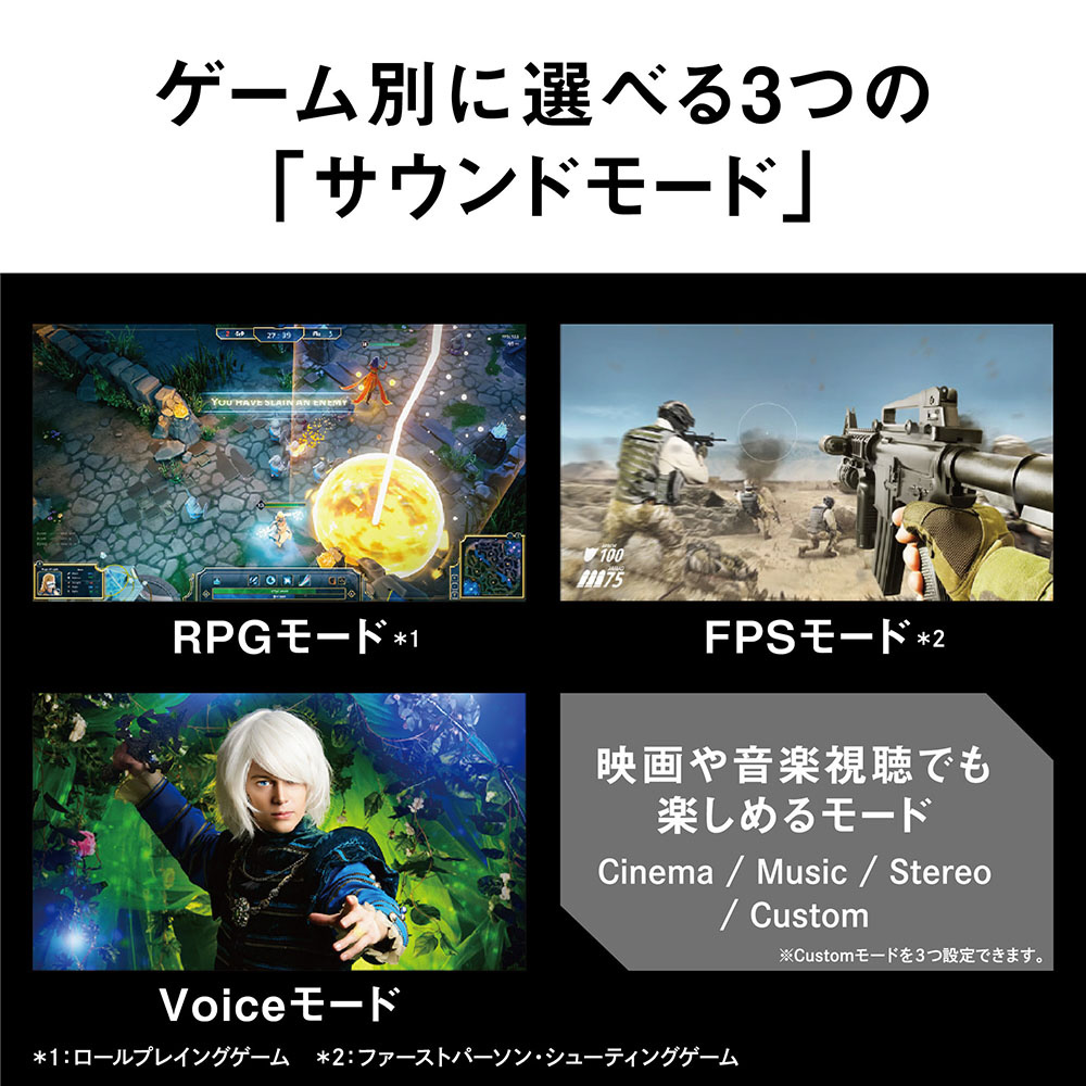 ■低音・音圧の強化と定位感を改善させ、ゲームフィールドへのさらなる没入感※1を実現