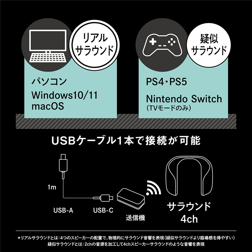 ※2 USB端子を持つ機器(PC、PS4/PS5、Nintendo Switchなど)と送信機を接続します。