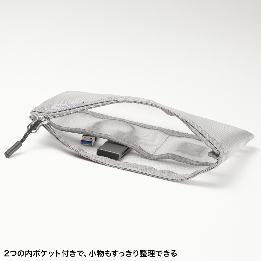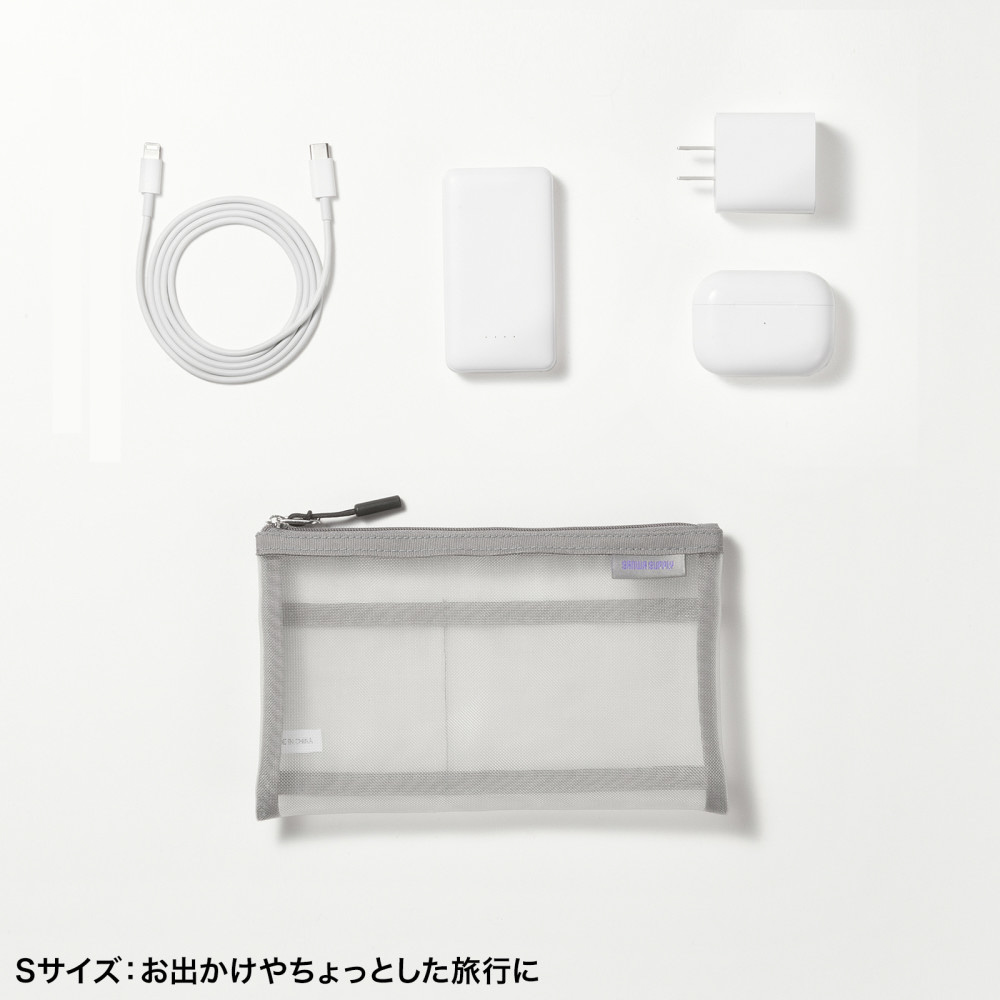 中身が見えるメッシュ素材のアクセサリーケース。