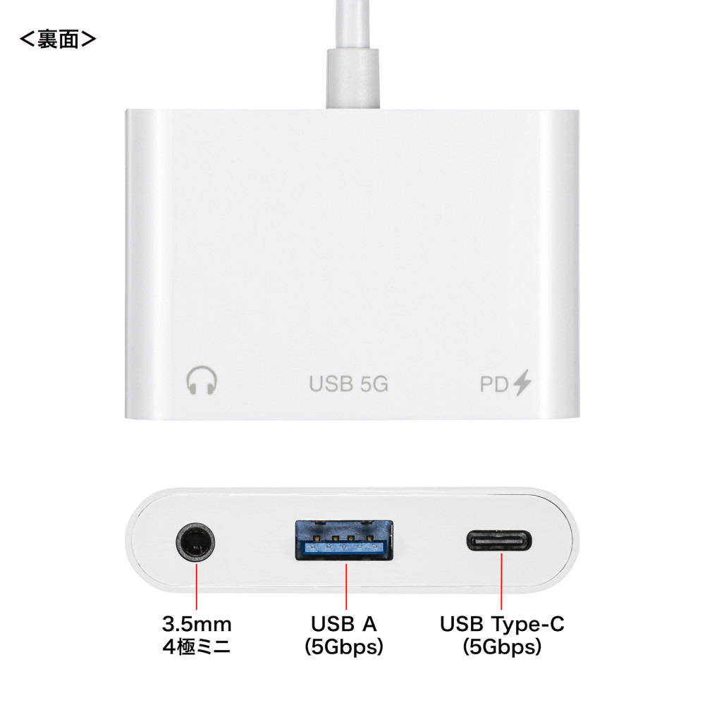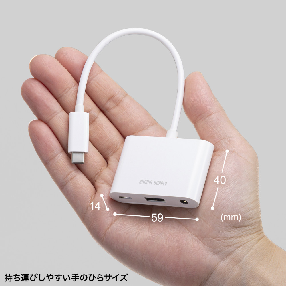 オーディオ変換プラグ [USB-C オス→メス φ3.5mm /USB-A+USB-Cメス給電 /USB Power Delivery対応 /100W /0.15m] (Chrome/Android/iPadOS/iOS/Mac/Windows11対応) USB-5TCPA23W