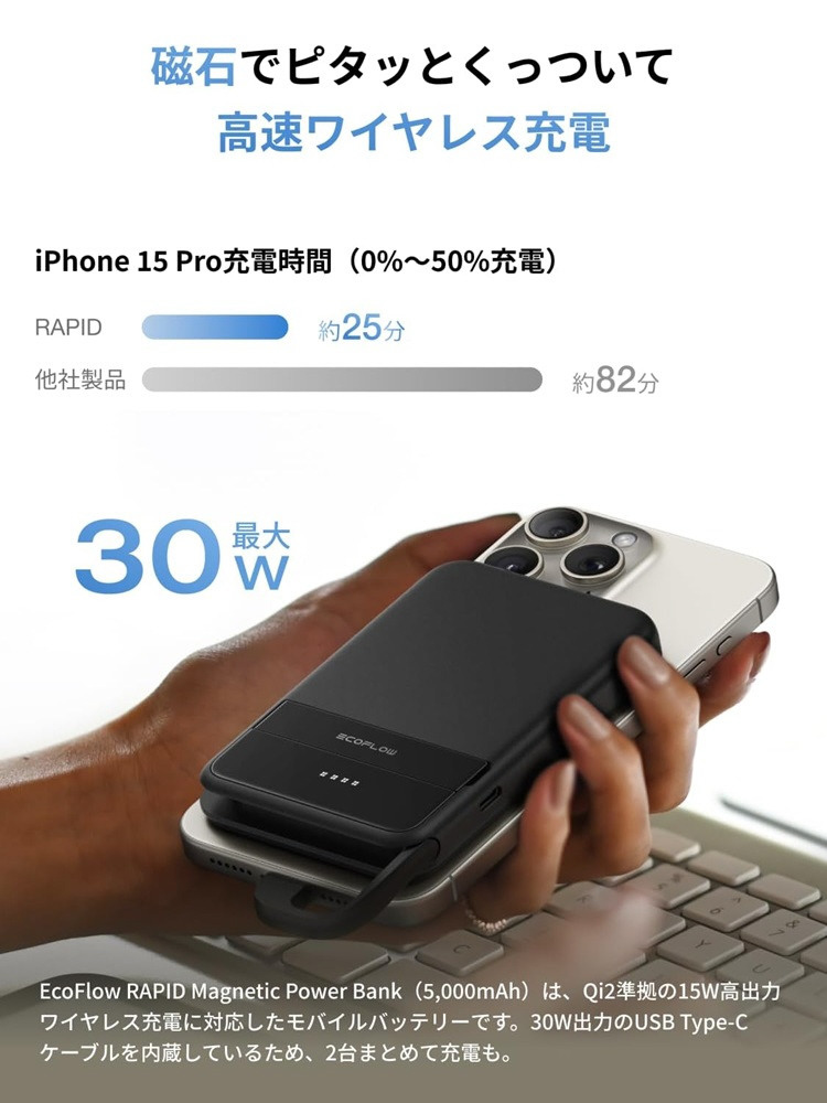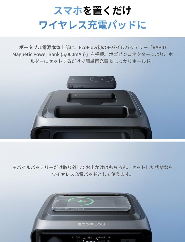 ・EcoFlow初のモバイルバッテリー「RAPID Magnetic Power Bank (5000mAh)」を搭載