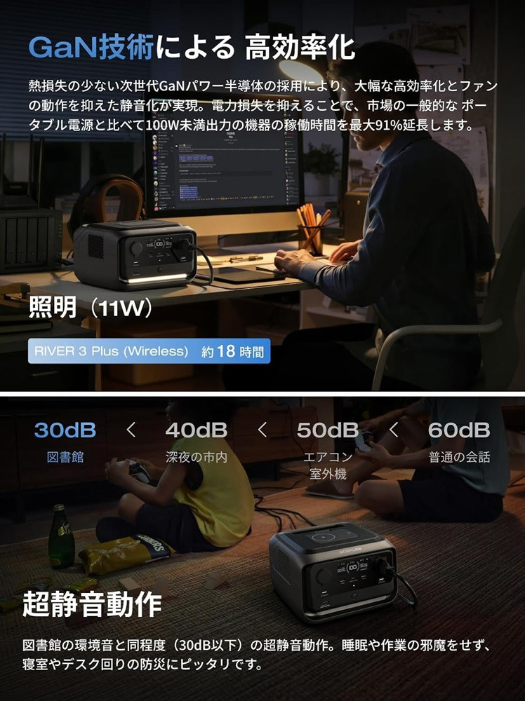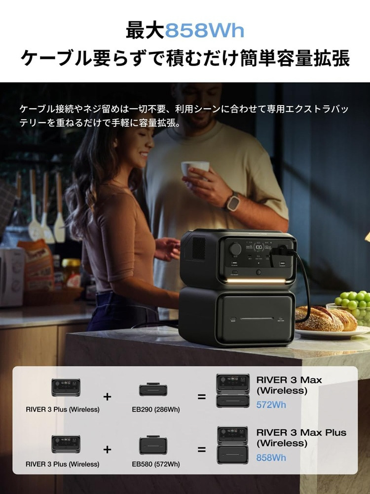 ポータブル電源 RIVER 3 Plus wireless EFRIVER3PLUS-W-JP-CBOX [リン酸鉄リチウムイオン電池 /7出力]