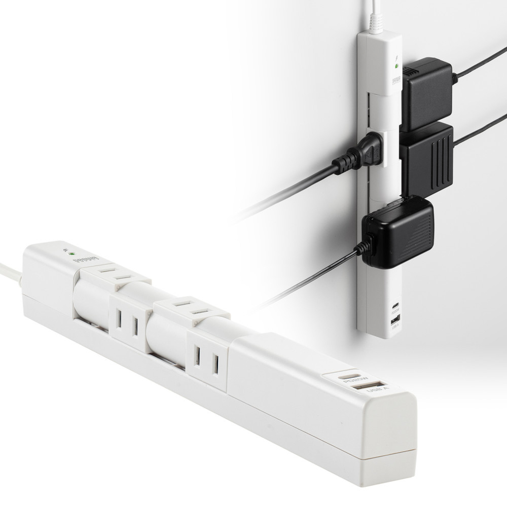 180度回転のAC差込口で、どんなプラグもスムーズ接続。強力マグネット付きPD20W対応スリムタップ。