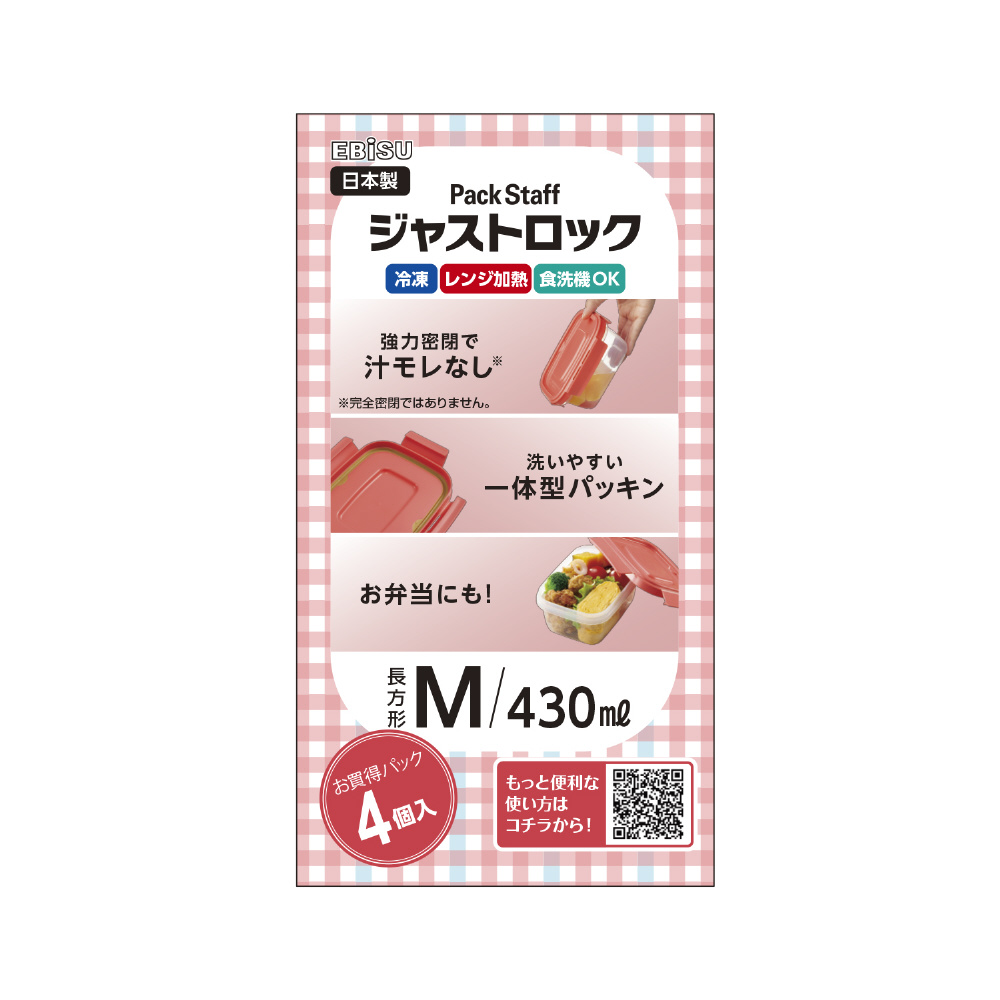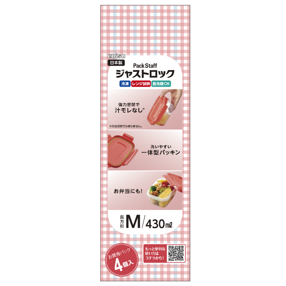 パックスタッフジャストロック長方形M 430ml 4コ入