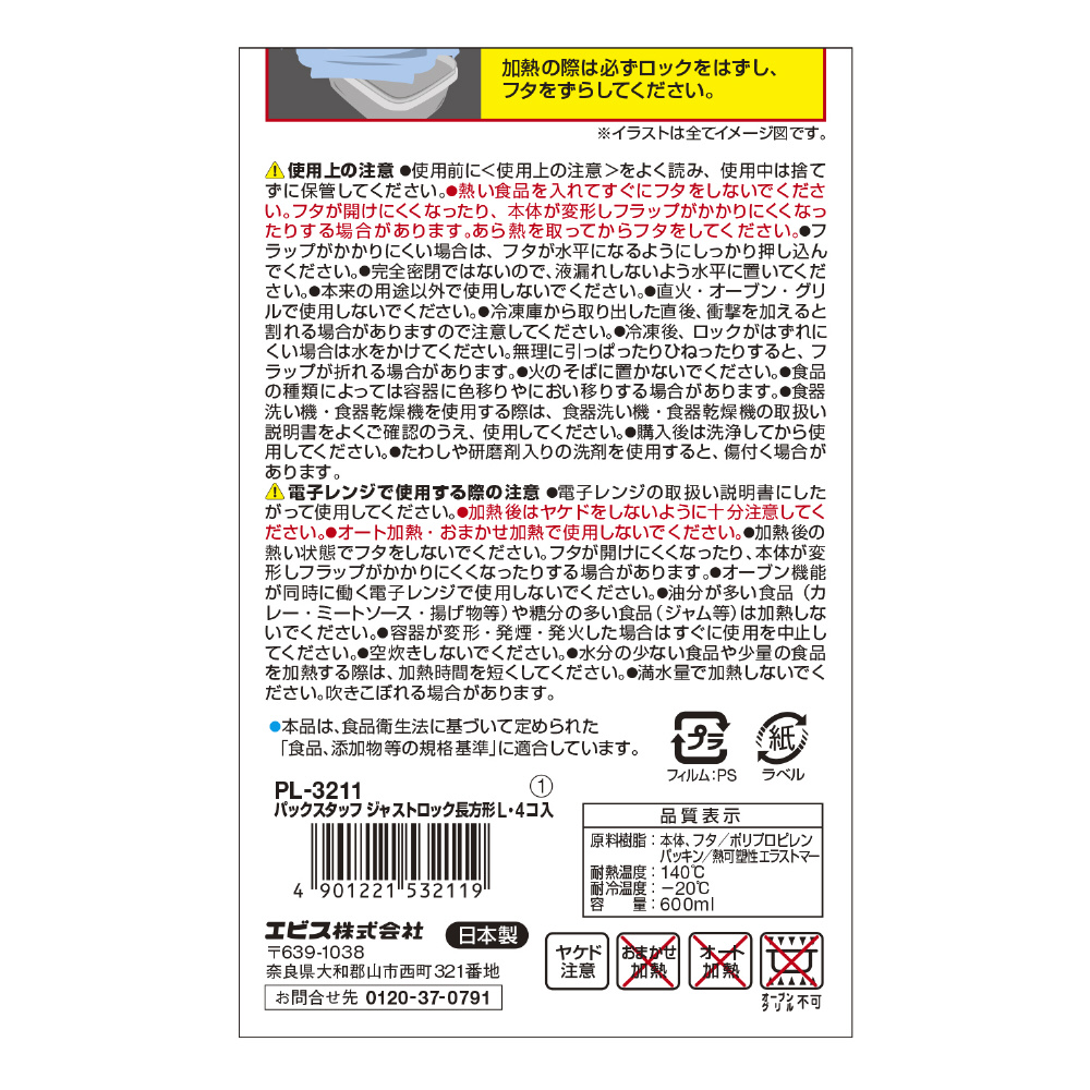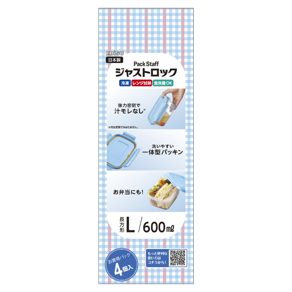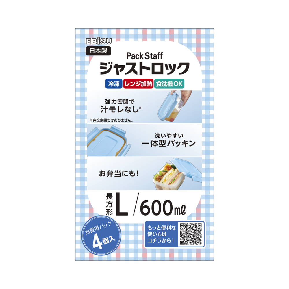 パックスタッフジャストロック長方形L 600ml 4コ入