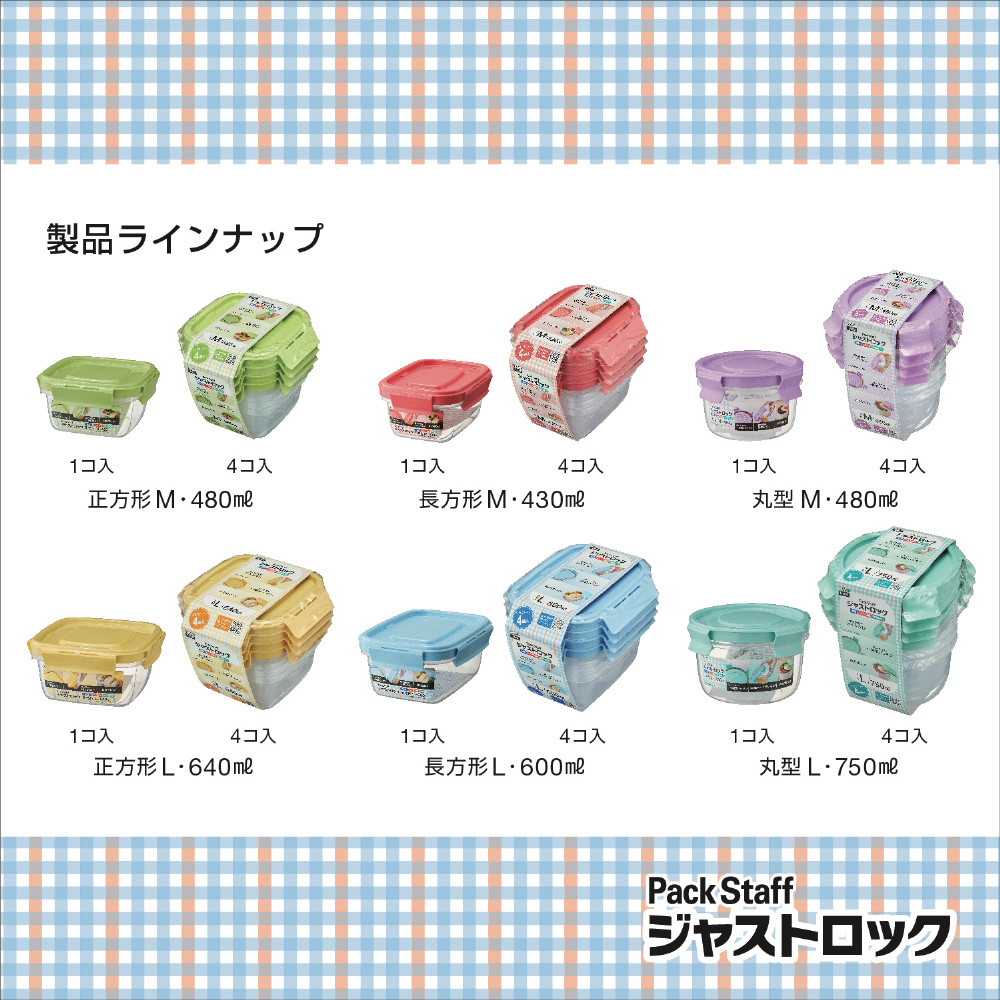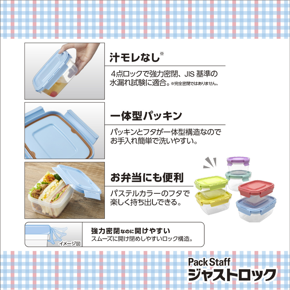 カラフルな4点ロック保存容器「ジャストロック」シリーズ
