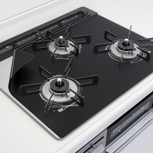 ガスコンロの天板汚れをしっかりガードし、お掃除の手間をなくしてくれる