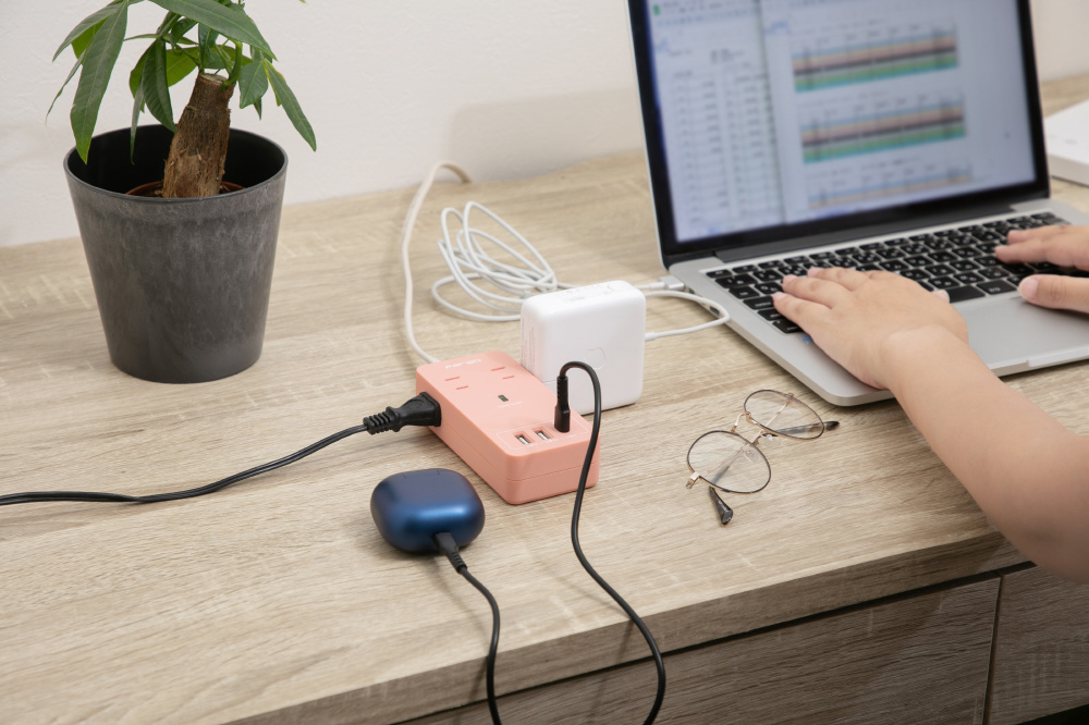 壁コンセントに挿すとAC4個口、PD対応のUSB-C1個+USB2個が利用できる充実の充電スポットへ大変身