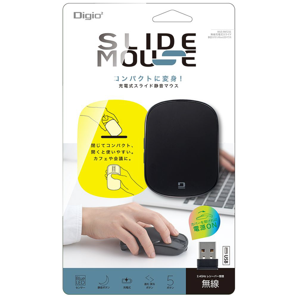 マウス スライド式(Chrome/Mac/Windows11対応) ブラック MUS-RKF235BK [BlueLED /無線(ワイヤレス) /5ボタン /USB]