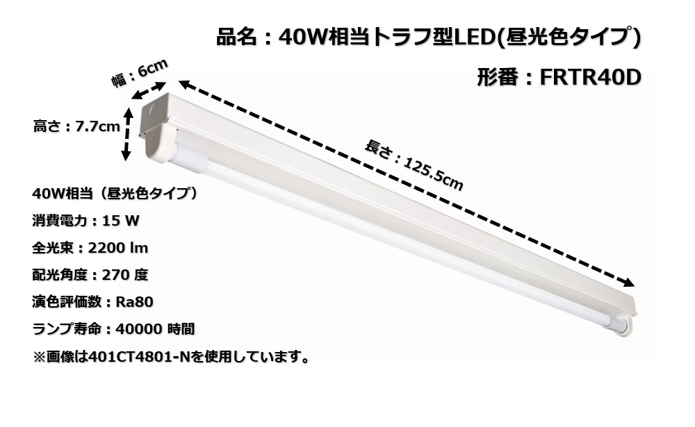 40W相当LEDベース照明トラフ型 1灯用 (昼光色タイプ) ※工事必要 FRTR40D [6畳 /昼光色 /リモコン無 /G13 /電気工事必要]