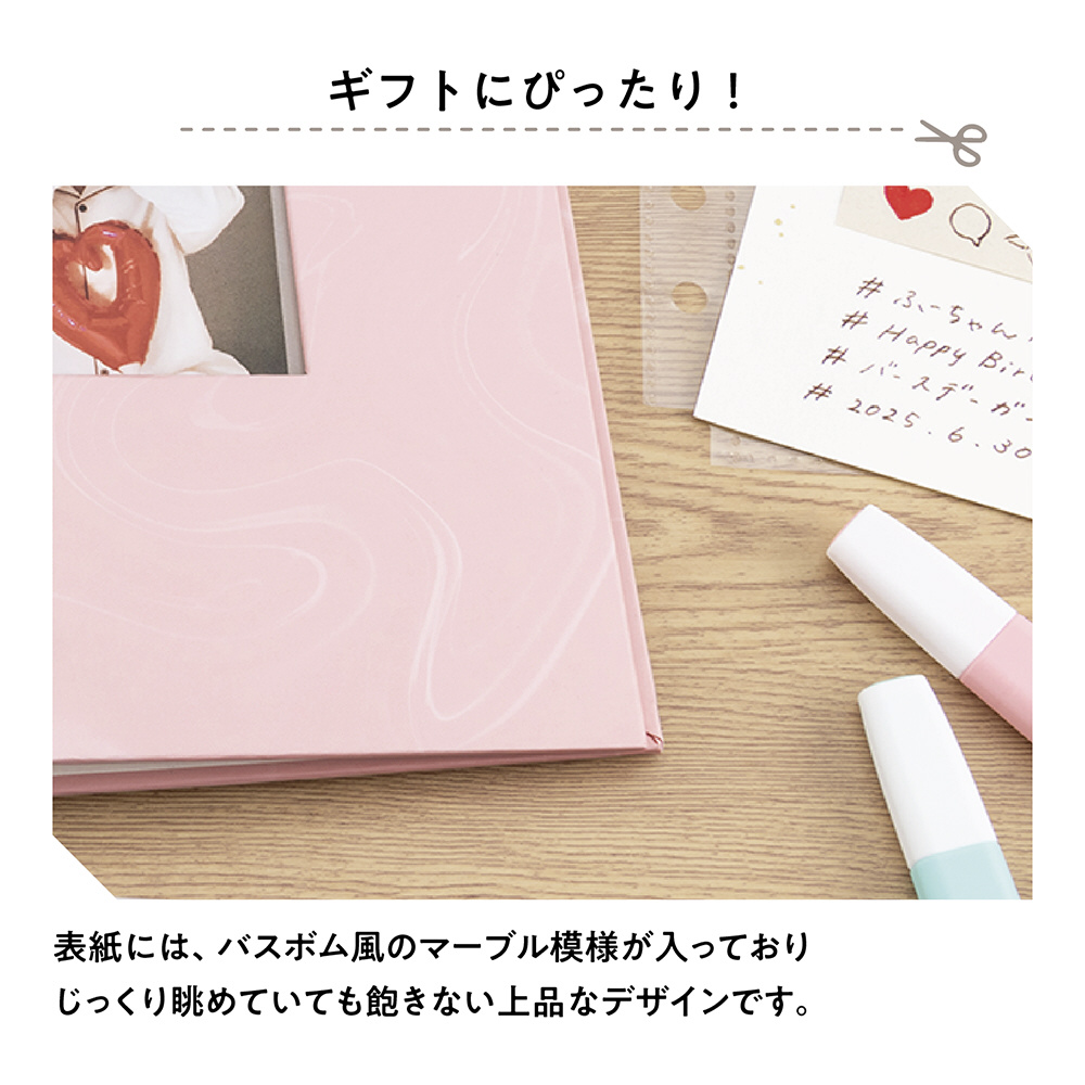■1ページ写真1枚で仕上がるバインダー式のスクラップアルバムです。