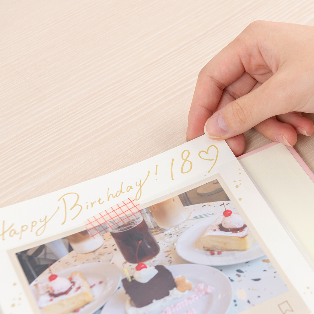 表紙窓には、お気に入りのL判写真やブロマイドを飾ることができます。