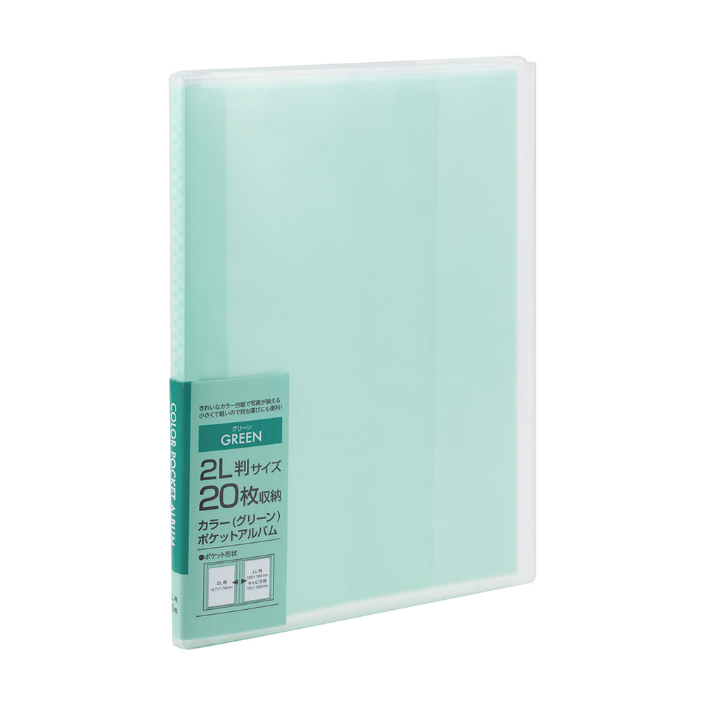 カラーポケットアルバム 2L判 20枚収納 グリーン