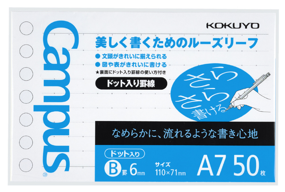 ルーズリーフ 50枚 [A7/B罫ドット] Campus(キャンパス) さらさら 896BT