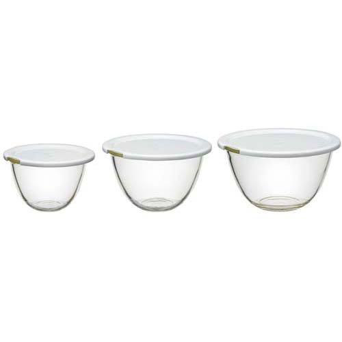 レンジフタ付き耐熱ガラス製ボウル3個セット MXPF-4904-W