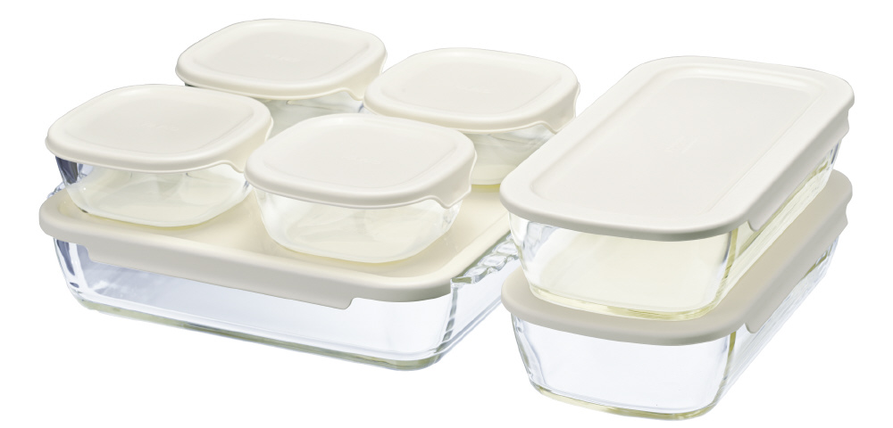スタッキング耐熱ガラスコンテナ・スクエア7個セット HKOZ-8002-OW