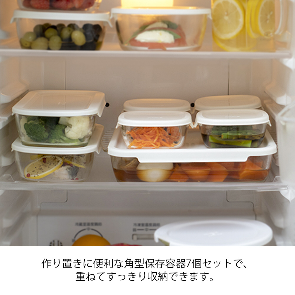 収納しやすい角型保存容器7点セット。