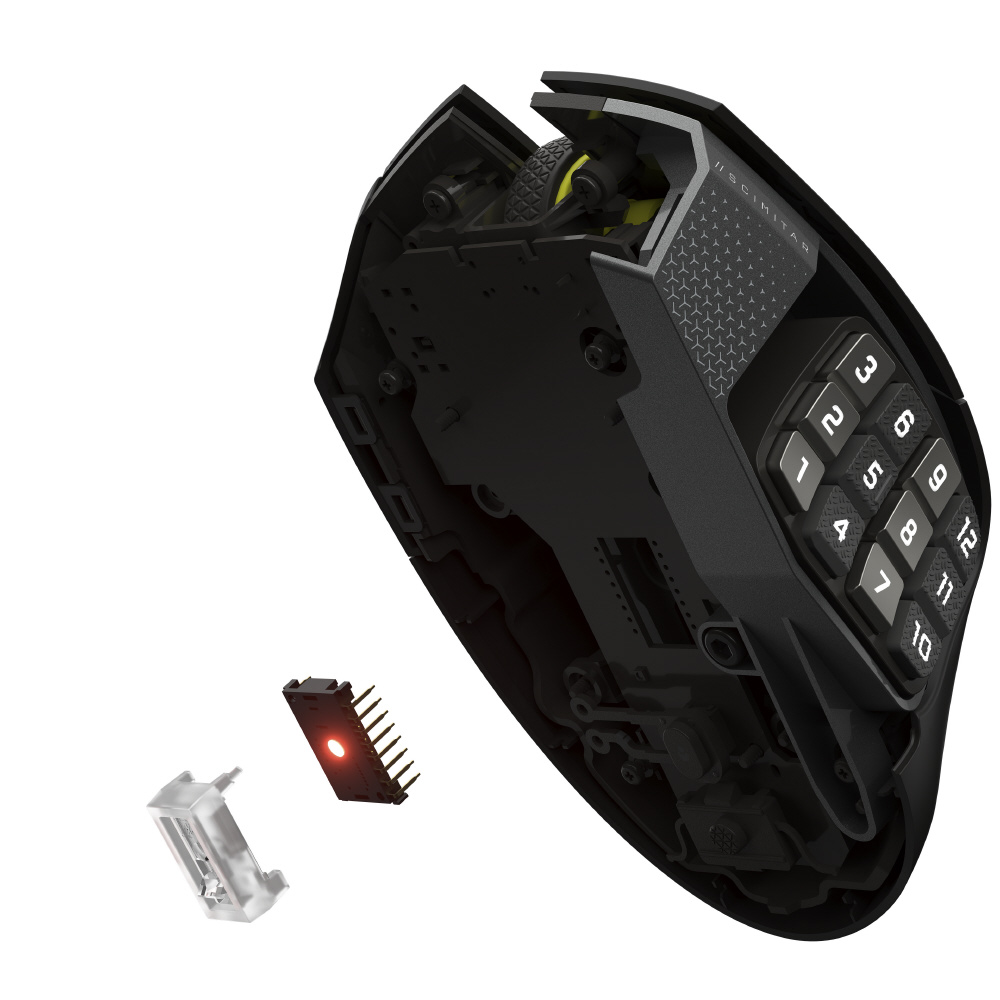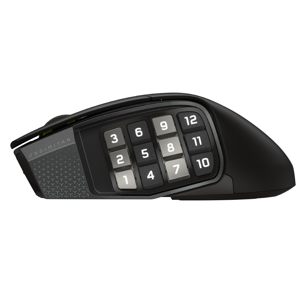 カスタマイズ可能な 16 個のボタン、調整可能な Key Slider、驚異的な正確性の MARKSMAN S 33K センサー、超低遅延 SLIPSTREAM WIRELESS を備えた CORSAIR SCIMITAR ELITE WIRELESS SE MMO ゲーミングマウスは、伝説的な MMO ゲーミングギアです。