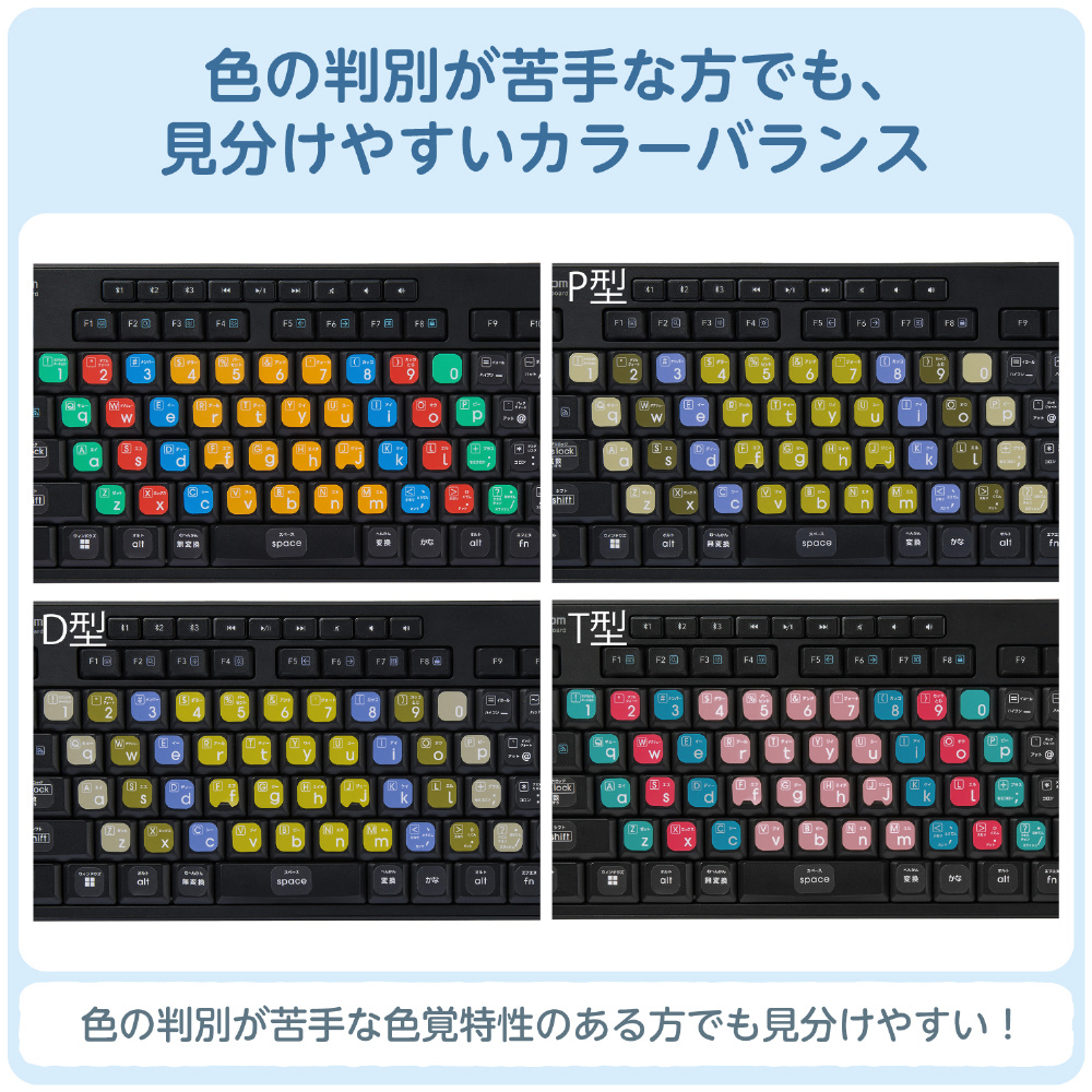 文字キーは原色に近いわかりやすい配色で、キーを打つ指が楽しく覚えられます。