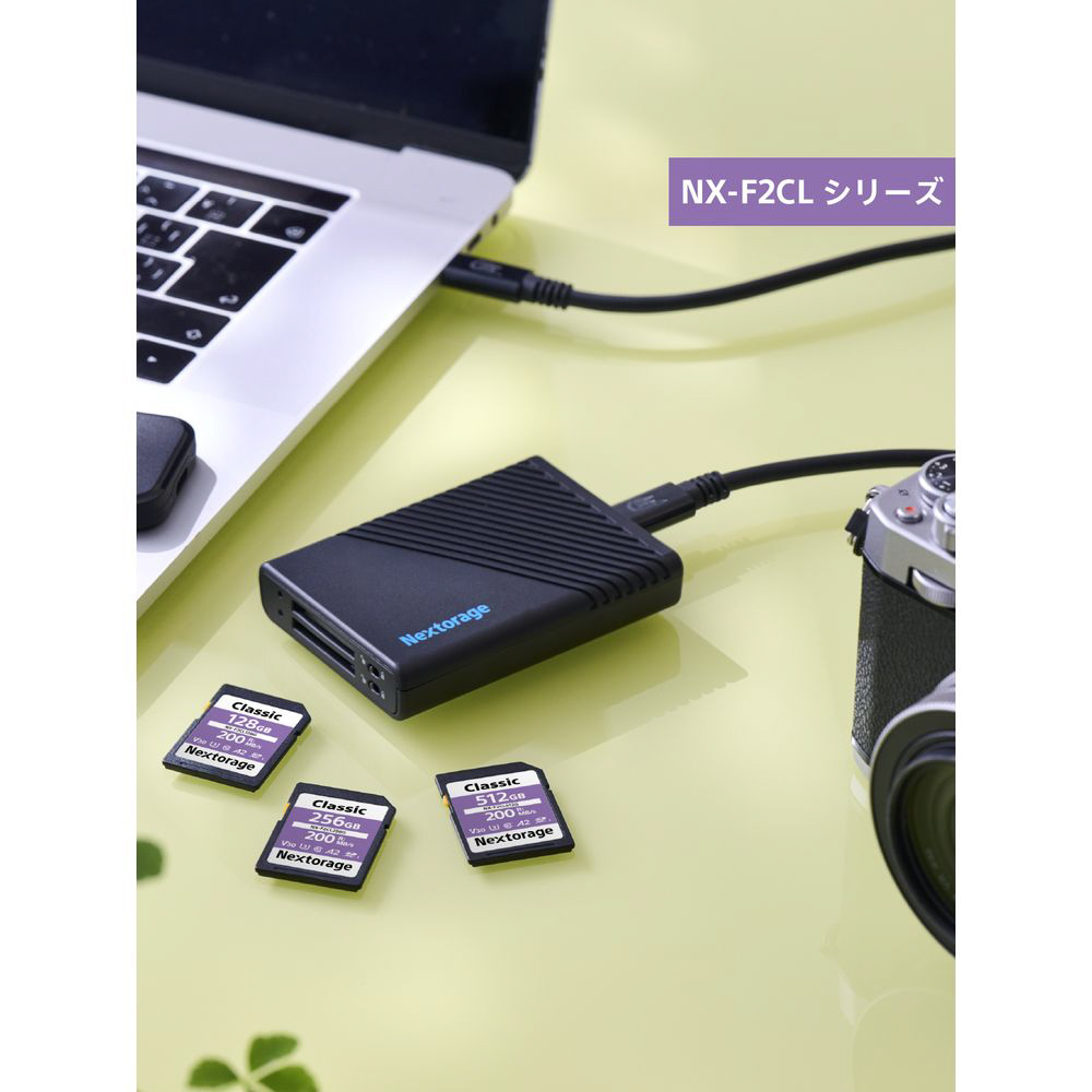 ※最大読み出し速度: 200MB/sはNextorageデュアルスロットカードリーダー 「NX-DF1CL」を使用する必要があります。