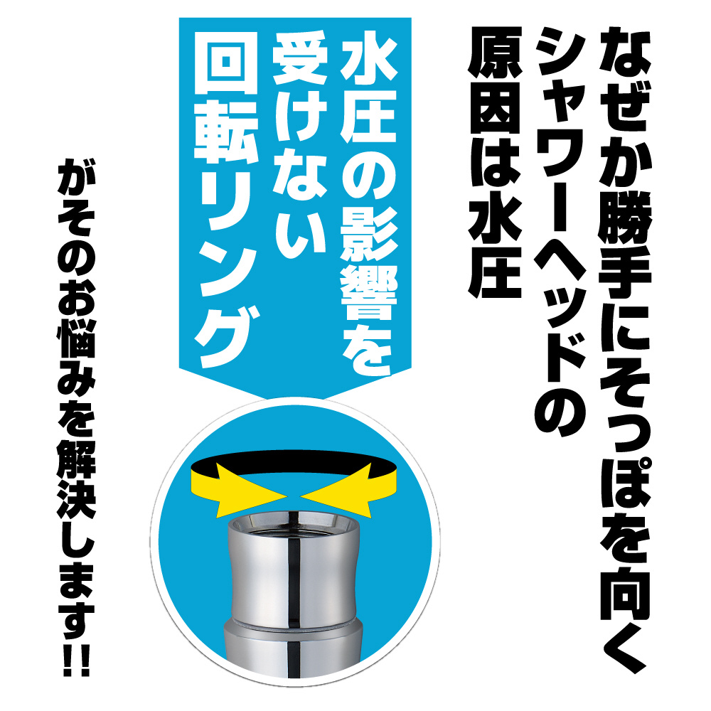 勝手にそっぽ向くシャワーヘッドのストレスから解放。ヘッドの位置を調整しやすいスムーズ回転機構搭載。