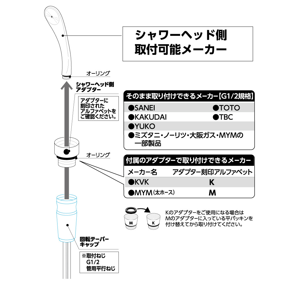 同梱内容:シャワーアダプター5個付き、シャワーヘッドアダプター2個付き