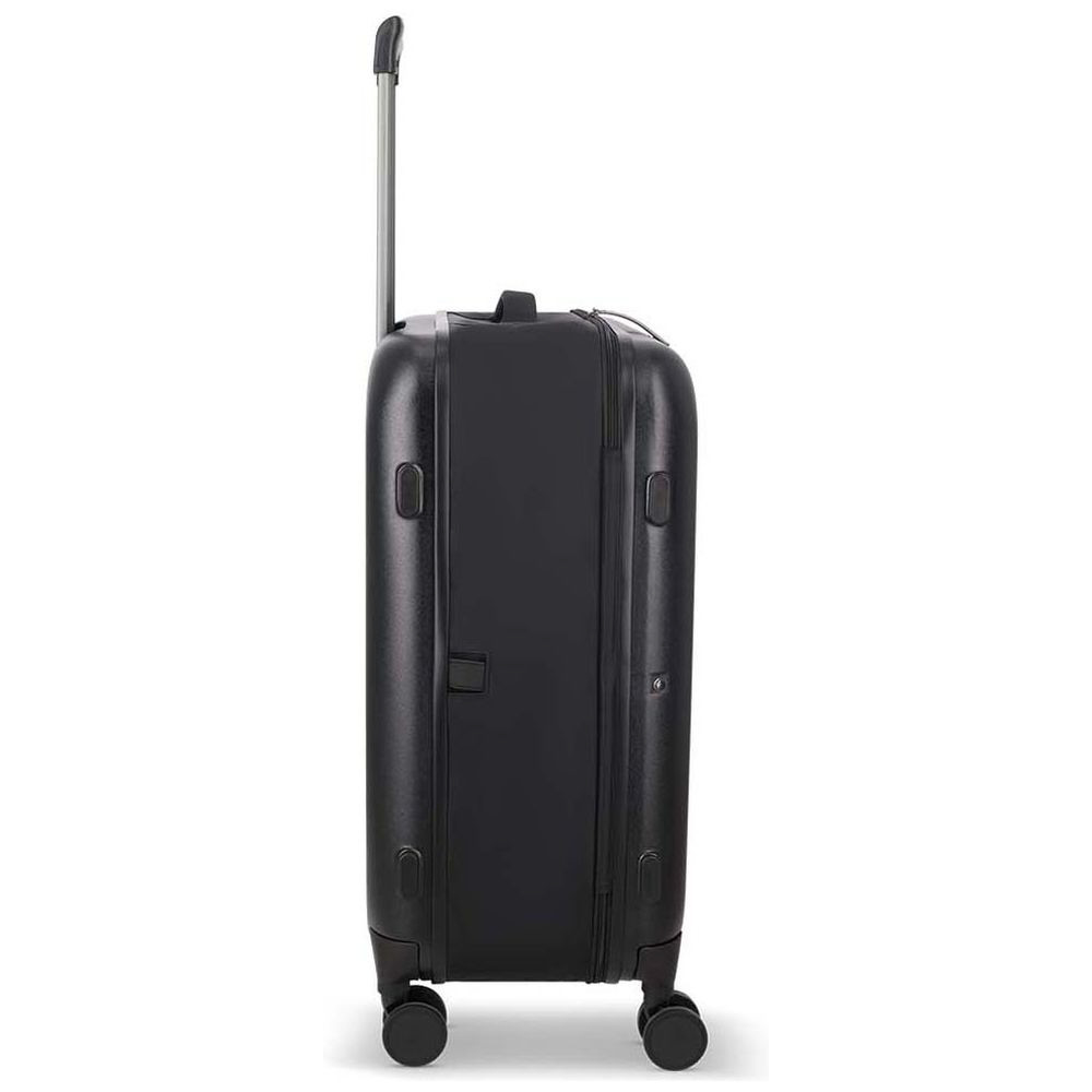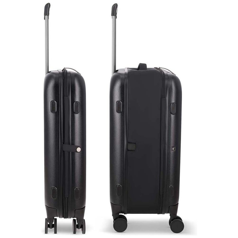 ボディは耐久性と耐傷性を備えたポリカーボネートを採用し、マチのポリエステル生地は防水仕様で雨の日でも安心です。
