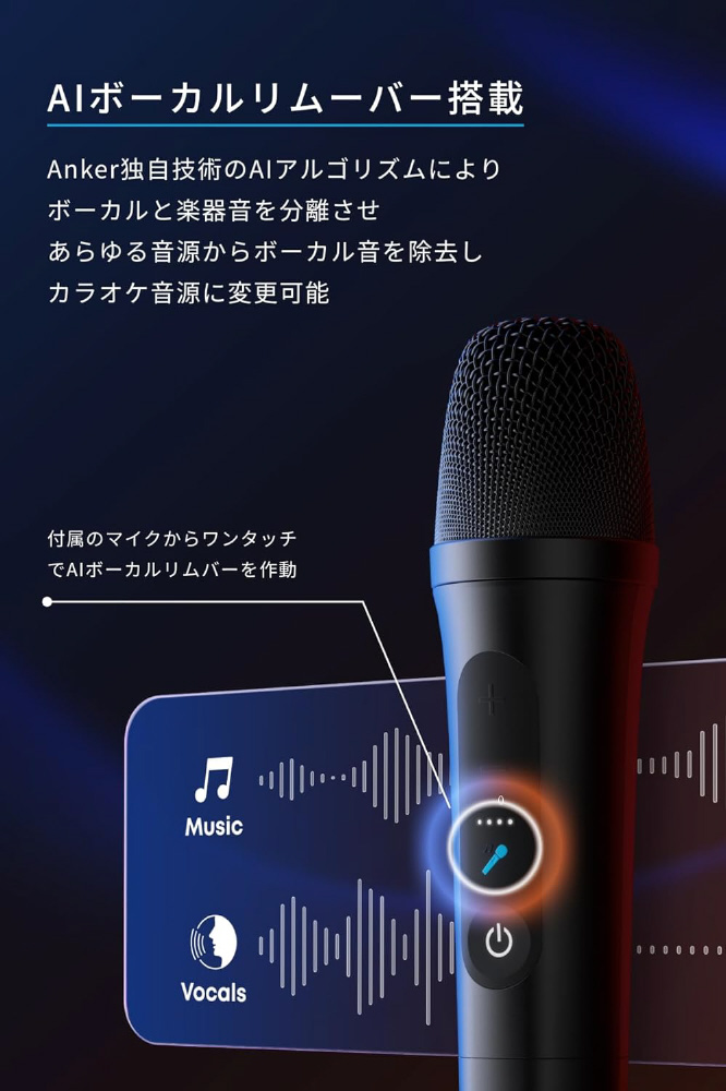 Anker独自のAIアルゴリズムによりボーカルと楽器音を分離させ、あらゆる音源からボーカル音を除去しカラオケ音源に変更可能。
