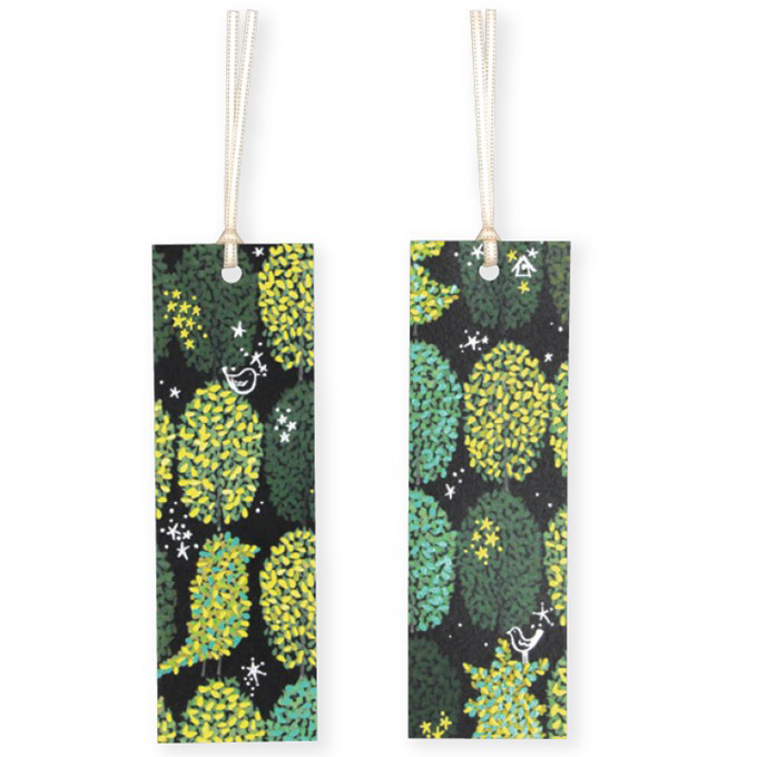 箔押しを施した、美しく輝く栞(しおり)です。 童謡詩人金子みすゞが詠った詩「私と小鳥と鈴と」をイメージしたデザインです。 2枚入り。