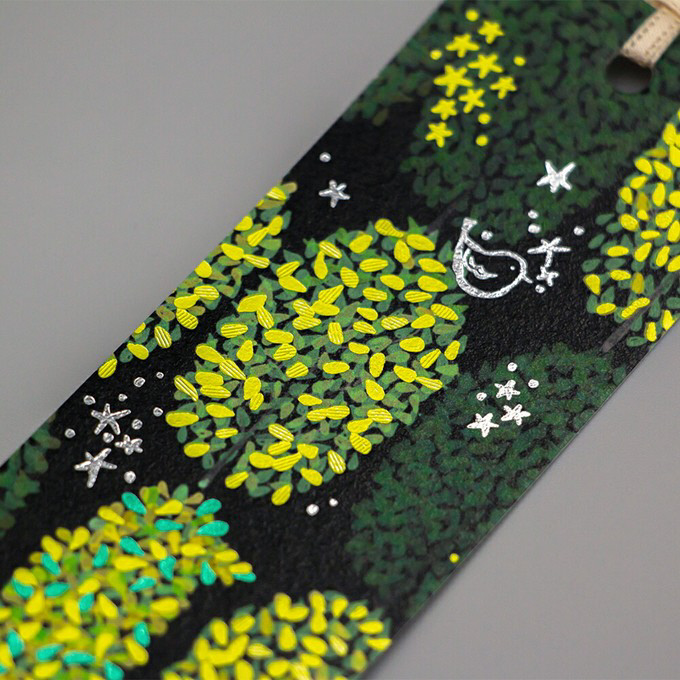 箔押しを施した、美しく輝く栞(しおり)です。 童謡詩人金子みすゞが詠った詩「金米糖の夢」をイメージしたデザインです。 2枚入り。