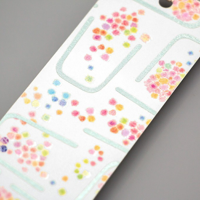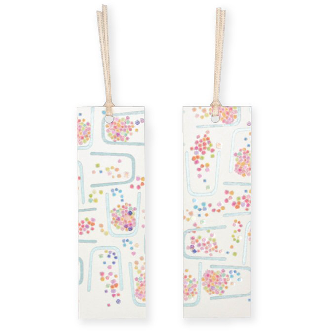 箔押しを施した、美しく輝く栞(しおり)です。 童謡詩人金子みすゞが詠った詩「私と小鳥と鈴と」をイメージしたデザインです。 2枚入り。