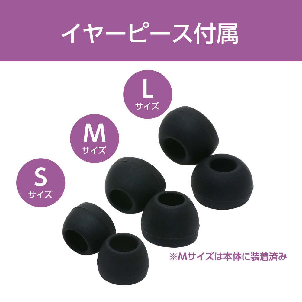 付属品 イヤーピース(S/M/Lサイズ※Mサイズ装着済)、ケーブルホルダー、取扱説明書
