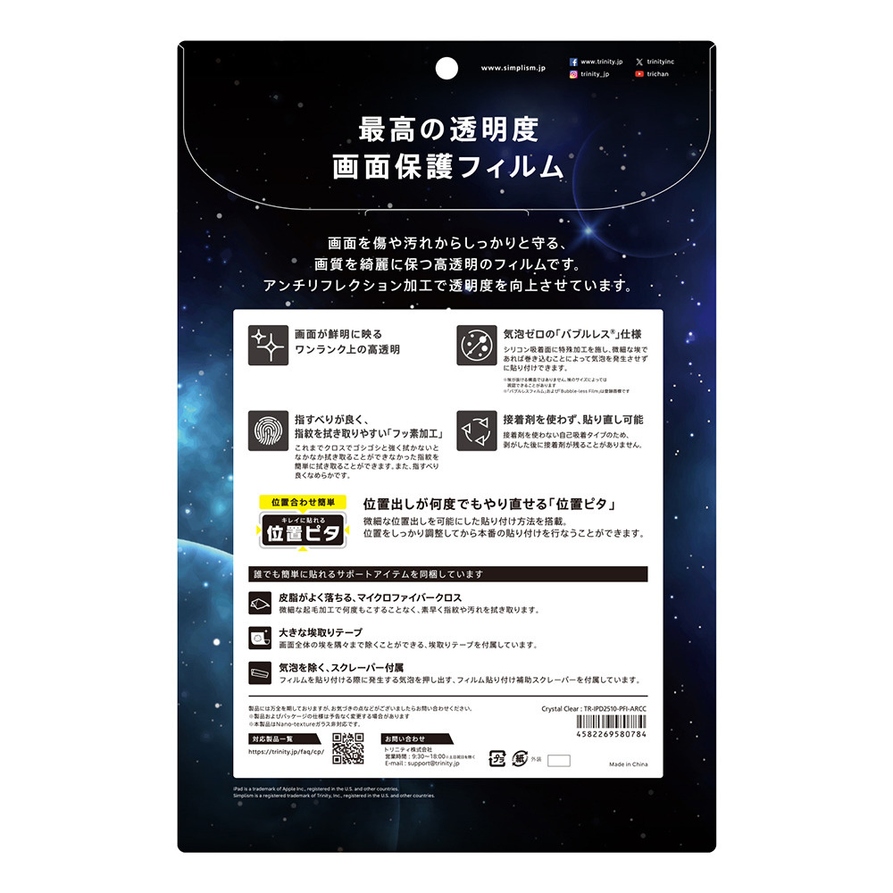 11インチ iPad(A16)、10.9インチ iPad(第10世代)用 超透明 画面保護フィルム 位置ピタ TR-IPD2510-PFI-ARCC