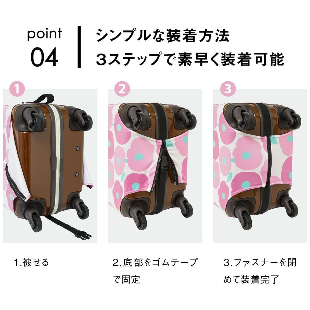 雨や汚れからスーツケースを守るスーツケースカバーです。飛行機に乗る際には目印としても活躍します。