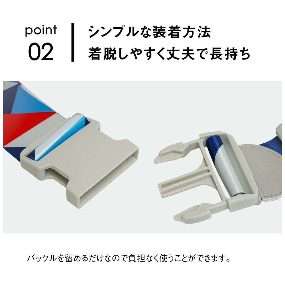 荷崩れ防止や盗難対策におすすめのスーツケースベルト。飛行機に乗る際には目印としても活躍します。