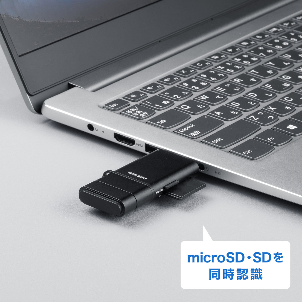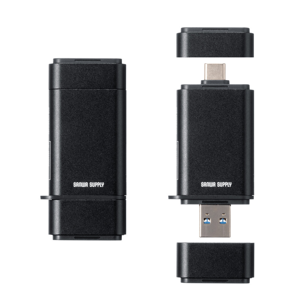 USB Type-CとUSB Aの両方で使える、SD/microSDカードリーダー。UHS-IIに対応。キャップ式。2スロット同時認識可能。