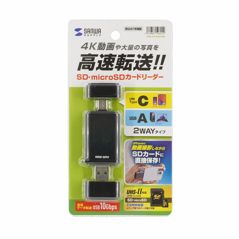 ADR-5TCMSD3BK UHS-II対応 USB Type-C & USB-A カードリーダー