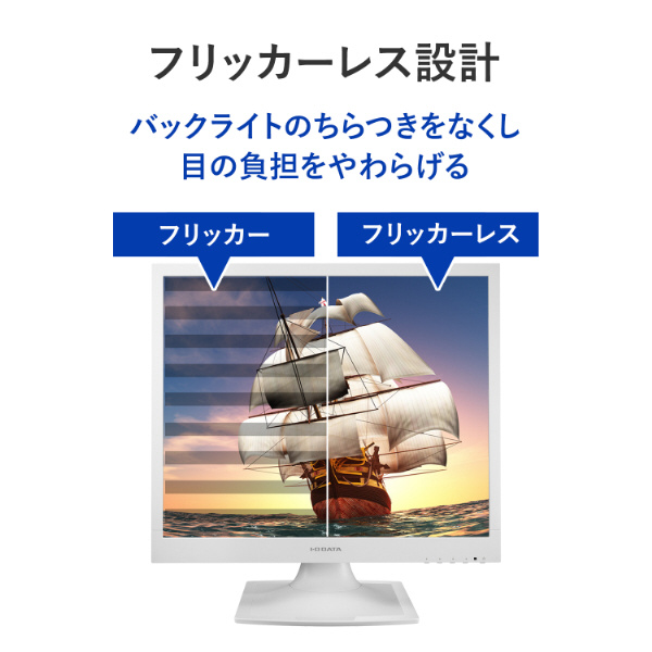 省スペースを有効活用し、長時間の使用でも快適に使用いただけるように設計された19型スクエア液晶ディスプレイです。