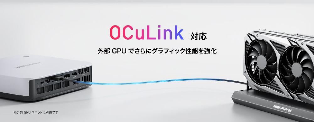 外部GPU接続に対応したOCuLink端子を搭載しています。