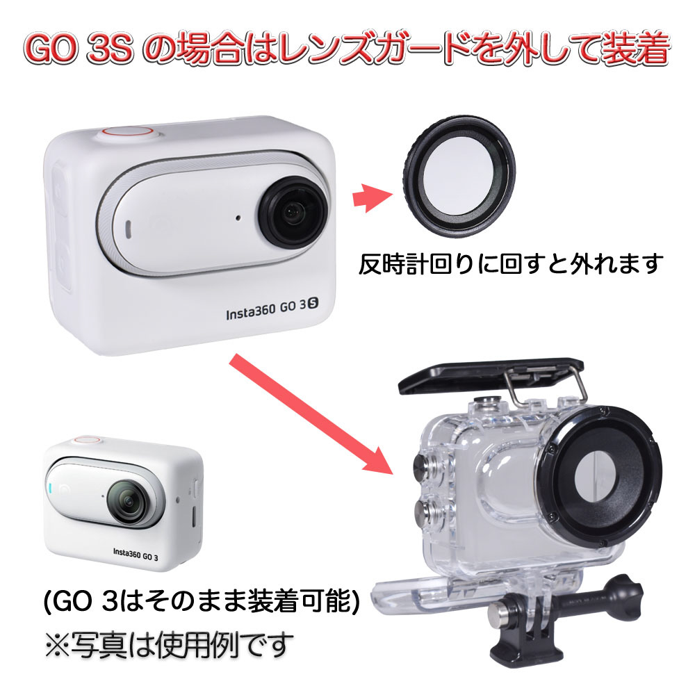※Insta360 GO 3Sでご使用の場合は、ケースに入れる前にレンズガードを外してください(反時計回りに回すと外れます)