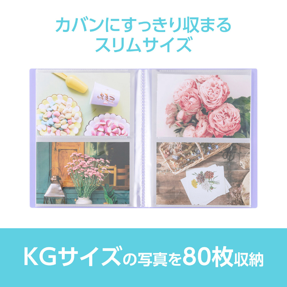 【高透明フィルム アルバム】 ビュートクリア ハガキ・ポストカード・KGサイズ 80枚収納 パープル ABTC-KG80PU