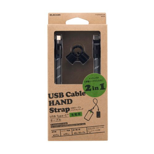 スマートフォン用ハンドストラップとしても、充電ケーブルとしても使える2in1仕様のUSBケーブルハンドストラップです。手首や腕に掛けてスマートフォンの落下を防ぎつつ、両手を自由に保ちながら操作ができます。USB Type-C(TM)に対応し、最大60W(20V/3A)の送電が可能。外出先でも快適に使えます。