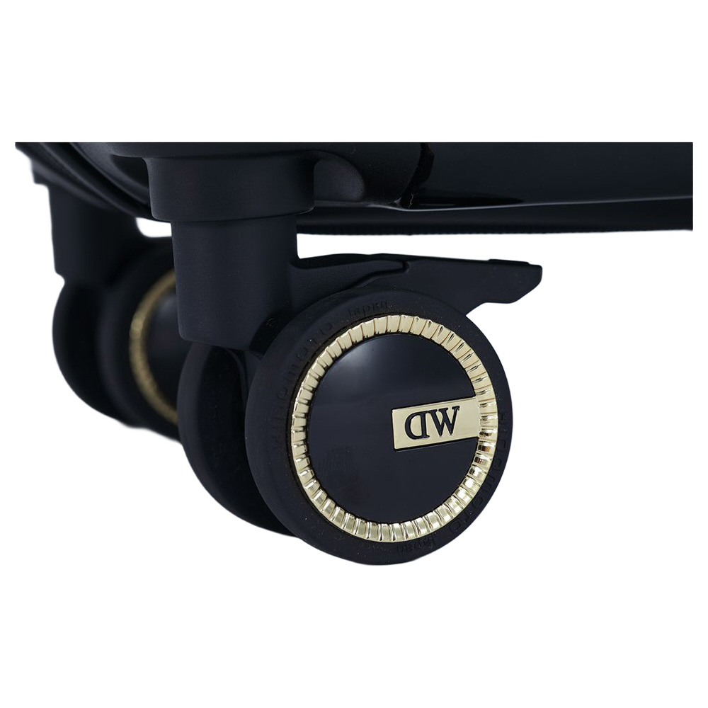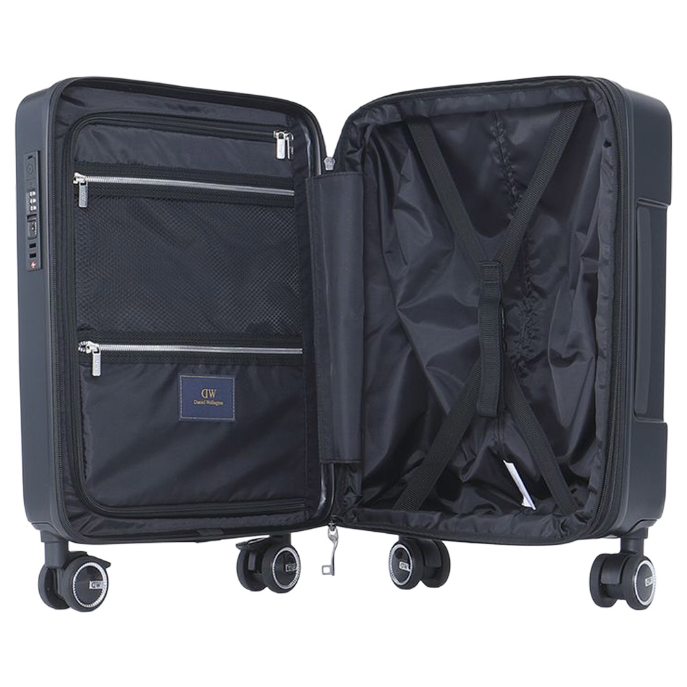 水平線をイメージしたゴールドのラインがポイントのキャリーケース。メタルロゴプレートとすっきりとしたシルエットが高級感を演出します。シンプルなデザインとベーシックなカラーリングで、ビジネスでもプライベートでもご使用いただけます。