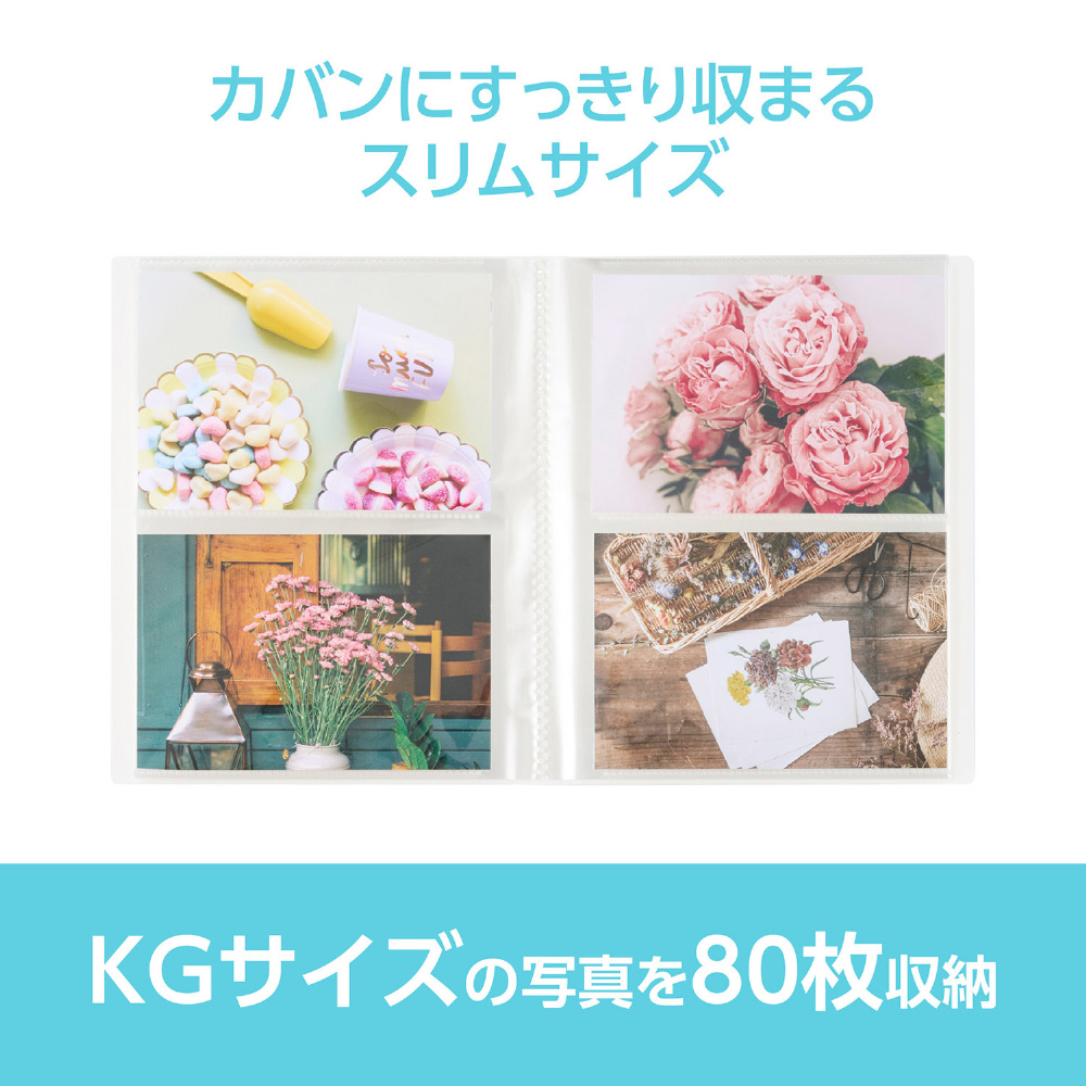 【高透明フィルム アルバム】 ビュートクリア ハガキ・ポストカード・KGサイズ 80枚収納 ホワイト ABTC-KG80WT
