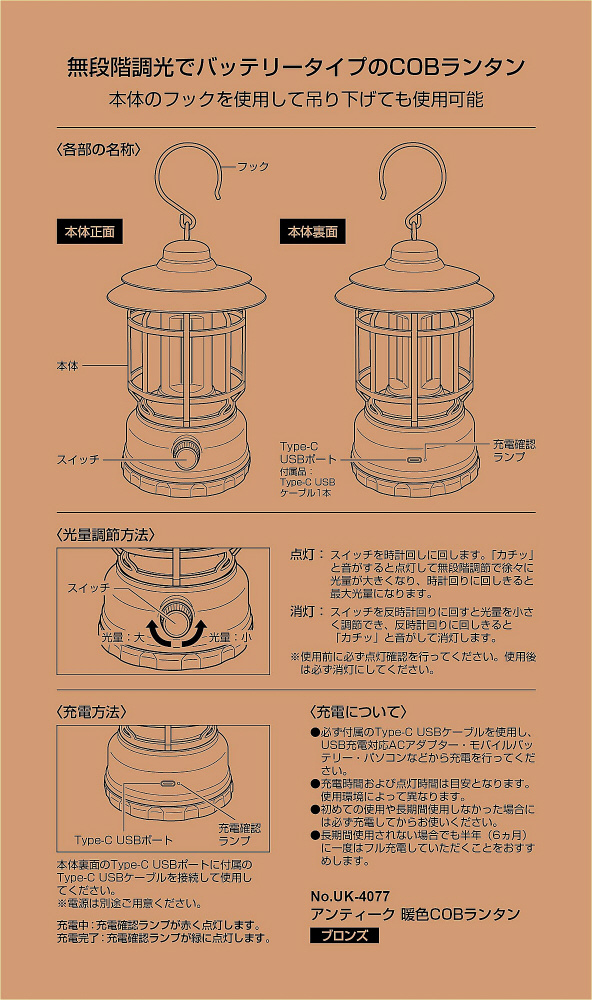 アンティーク暖色COBランタン