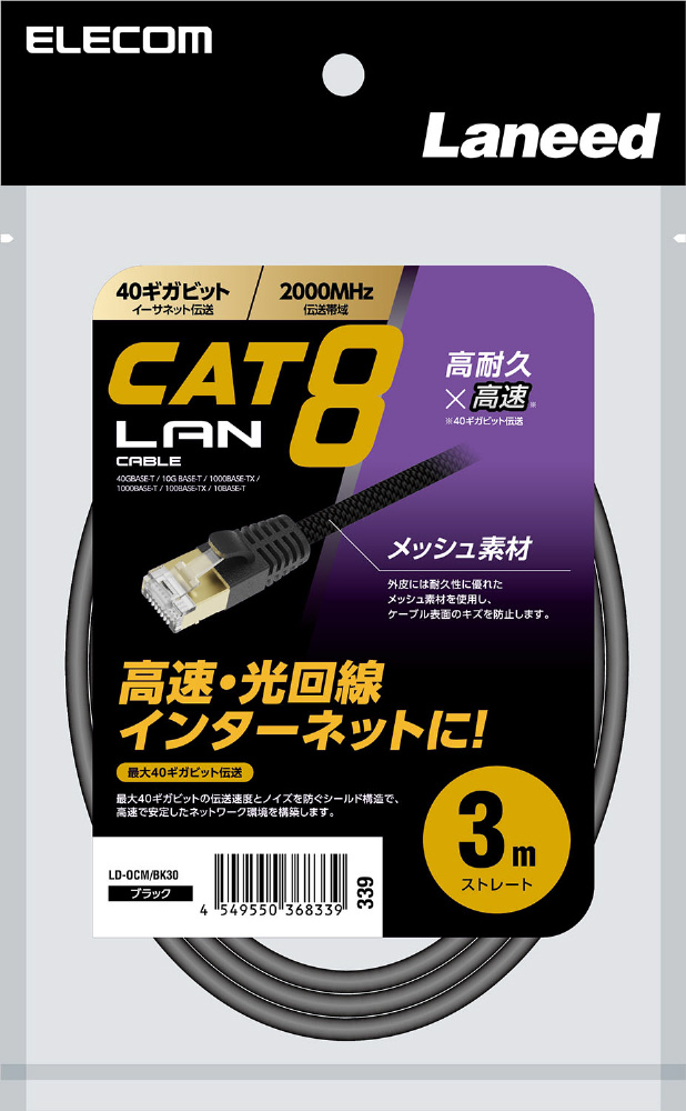 LD-OCM/BK30 LANケーブル 高耐久 ブラック [3m /カテゴリー8 /メッシュ]
